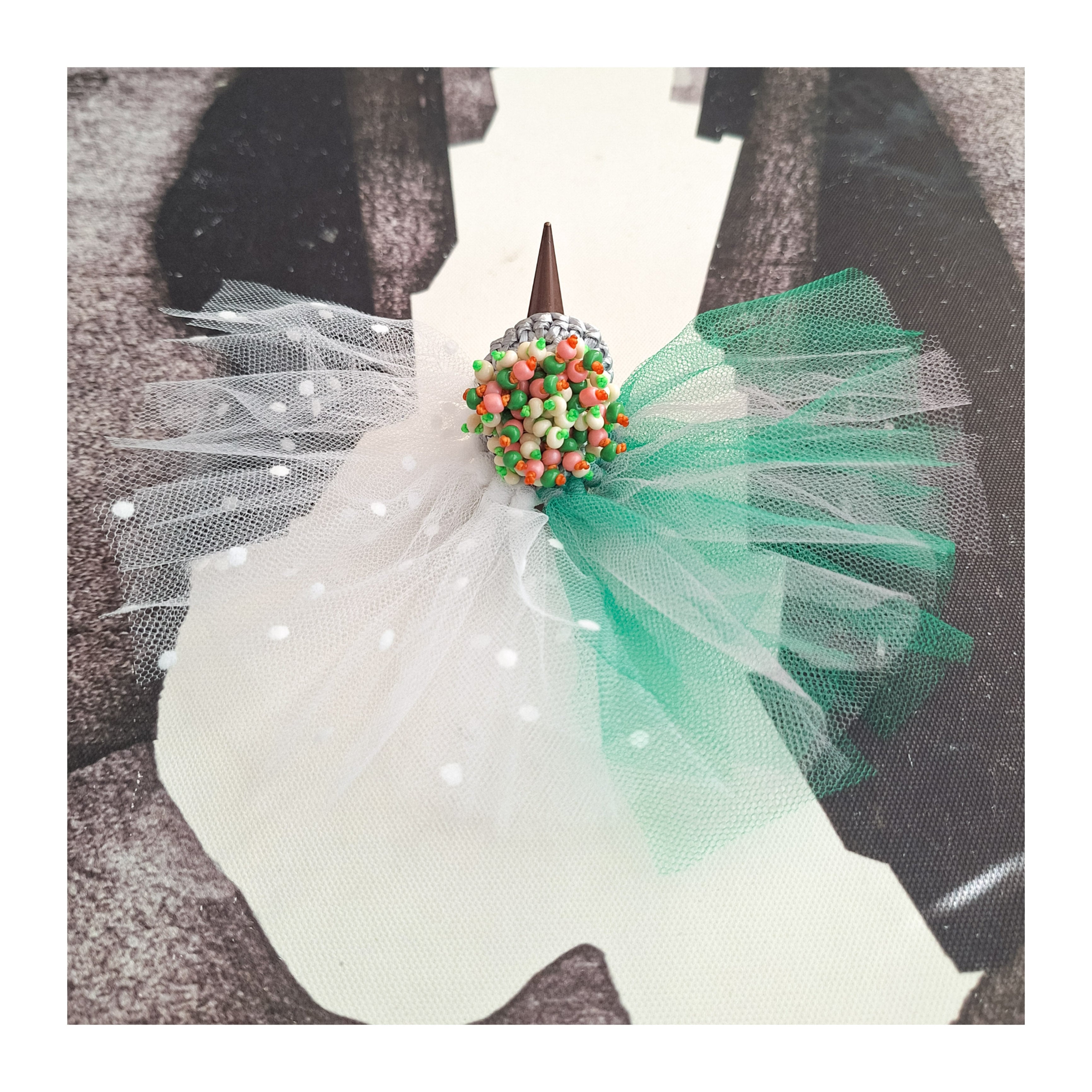 くじゃくが羽を広げたようなリング、